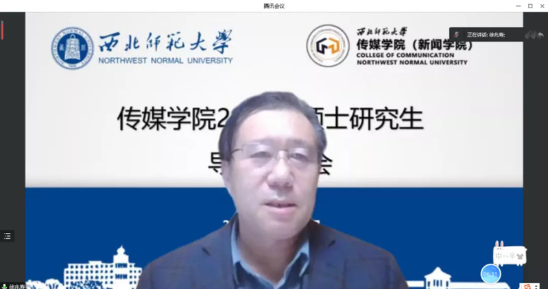 会议第二项是导师自我介绍环节。各位导师从个人研究方向、主讲课程、主要研究成果、研究经历、对所带研究生的要求等方面进行简单介绍,使同学们对每一位导师有更深刻的了解。此外各位导师也对同学们提出了期待与要求:“gg999策略手机白菜员工应具备双腿走路的能力,既要有扎实的理论修养和学术训练,又要有创作实践,要将理论与实践相结合”。