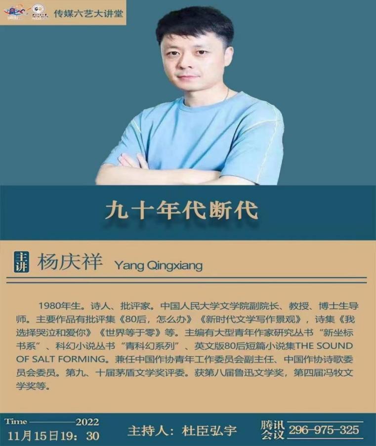 传媒六艺大讲堂|“杨庆祥讲座:《九十年代断代》”