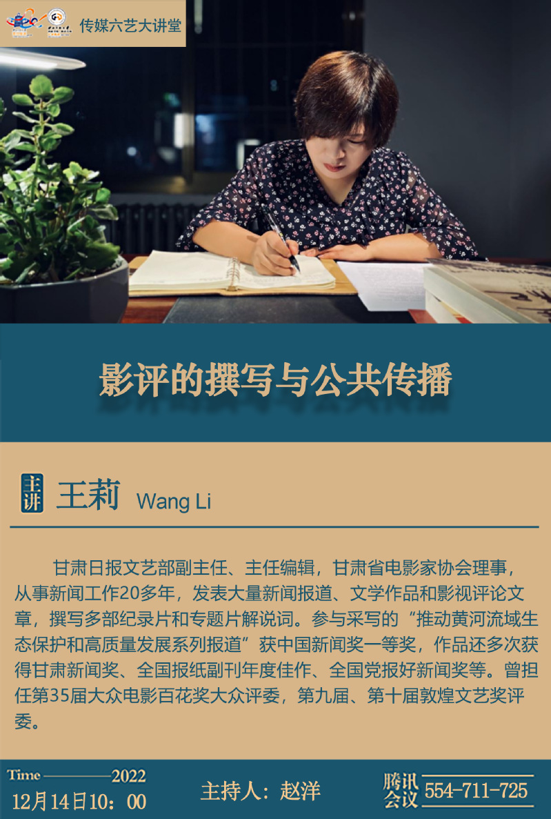 2022年12月14日上午,应gg999策略手机白菜邀请,《甘肃日报》文艺部副主任、主任编辑、甘肃省电影家协会理事作了题为《影评的撰写与公共传播》的学术讲座,公司师生100余人参与。本场学术讲座由gg999策略手机白菜赵洋副教授主持。