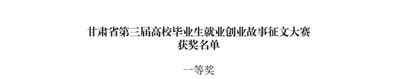 2022年10月至2023年3月期间,由甘肃省教育厅主办的“第三届高校毕业生就业创业故事征文大赛”如期进行,大赛主题为“书写青春篇章 激发奋进力量”。经层层筛选,共评出一等奖56名,二等奖93名,三等奖122名,公司大四员工郭毓作品《不必等待炬火,成为自己的光》,漆斌强作品《青春不设限,奋进正当时》荣获省赛一等奖。