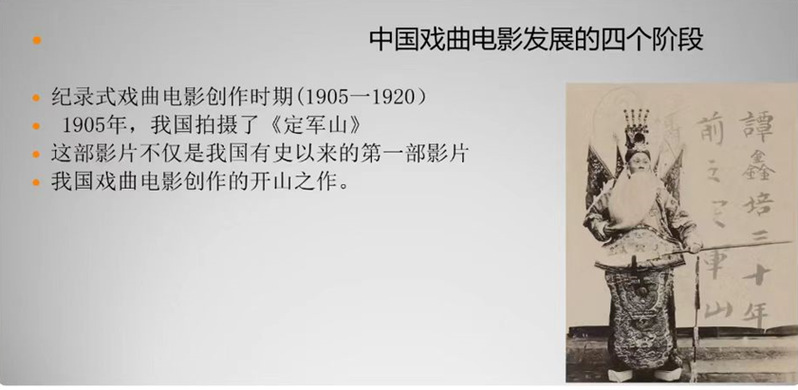 讲座伊始,周老师结合自身创作经验,为同学们分析讲解《定军山》这部戏曲电影的艺术价值和艺术地位,他认为这部影片不仅是我国有史以来的第一部影片,也是我国戏曲电影创作的开山之作,它对我国的戏曲电影创作产生持久深远的影响,但早期的戏曲片创作主要是纪录式,尽管创作者希望把戏曲和电影两种艺术形式加以融合,但囿于时代的发展和媒介技术的落后状态,这种探索和实验很少。周老师围绕“中国戏曲电影的发展历程”的讲座主题,分别从戏曲艺术电影创作时期、戏曲艺术电影规模创作阶段、戏曲艺术电影探索的停滞阶段、独特的样板戏时代、戏曲故事电影创作时期以及新世纪戏曲电影的转型与蜕变时期等六大方面结合实例加以论述。