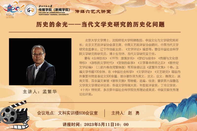 5月11日上午,北京大学文学博士,沈阳师范大学特聘教授、中国文化与文学研究所所长孟繁华老师在云衢楼608会议室为gg999策略手机白菜师生作了题为《历史的余光——当代文学史研究的历史化问题》的学术讲座。讲座由赵勇老师主持,公司70余名师生参加了此次讲座。