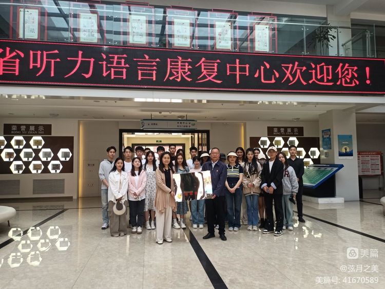 (图为师生代表在省听力语言康复中心参观)