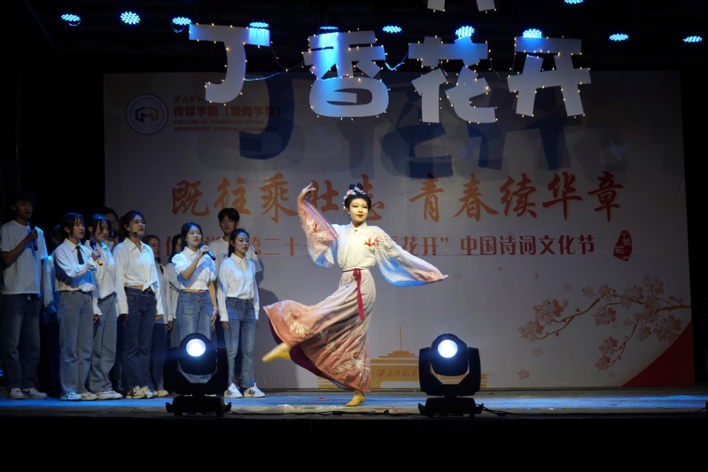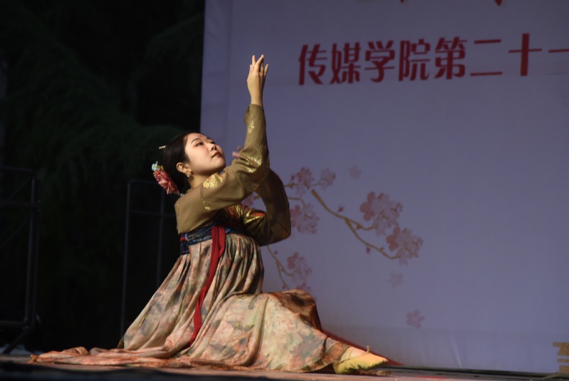 紧接着,2021级新闻学1班的孟令轩为大家带来独舞《清平乐·禁庭春昼》。原词赋作者为“诗仙”李白,舞蹈也如作品一般清新飘逸,令人回味无穷。