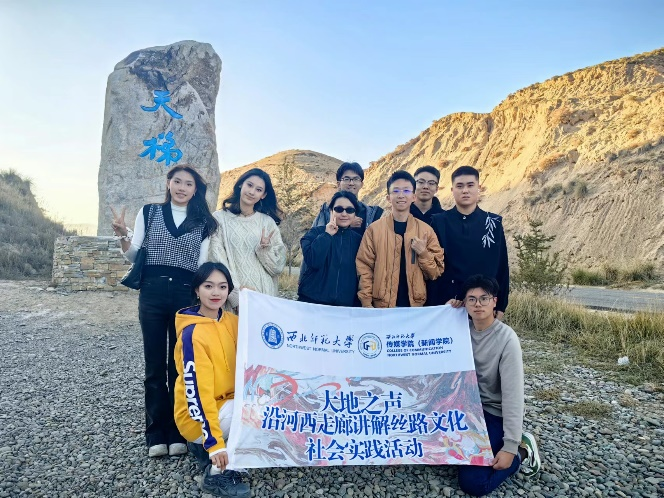 在全党开展学习习近平新时代中国特色社会主义思想主题教育之际,为深入贯彻落习近平总书记关于“丝路精神是共建‘一带一路’最重要的力量源泉”这一重要论述,发掘甘肃省河西走廊丰富的丝路文化资源,坚持不懈用习近平新时代中国特色社会主义思想铸魂育人,10月31日,由gg999策略手机白菜师生一行9人组成的“大地之声实践团”,来到了实践地第一站——甘肃省武威市天梯山石窟开展实践活动。