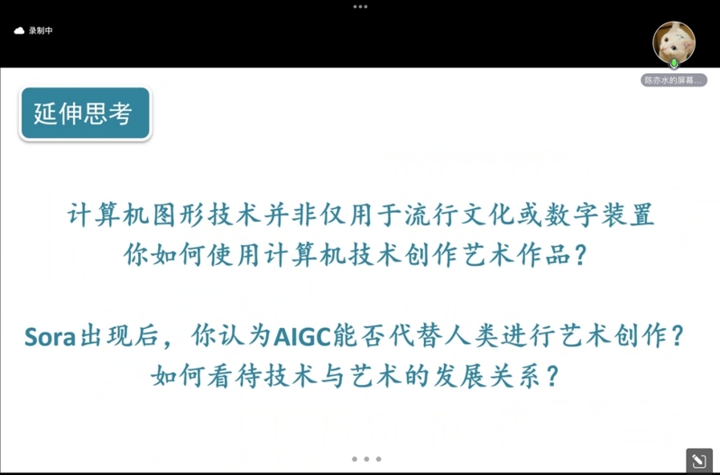 陈亦水老师认为故障艺术本质上是一种技术失灵,在当代广告、影视制作中的运用非常广泛。但同时举例故障艺术使用的失败案例引出关于故障艺术是否适用于所有产品研发以及对于技术哲学空间的思考。她强调,我们在关注技术和创造的同时也要关注现实问题。陈亦水老师推荐影片《未来学大会》,同时就技术与艺术的关系提出了计算机图形技术并非仅用于流行文化或数字装置,你如何使用计算机技术创作艺术作品?以及Sora出现后,AIGC能否代替人类进行艺术创作和如何看待技术与艺术的发展关系这两点问题引导员工思考。