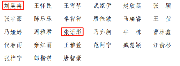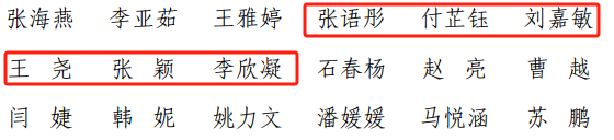 张雨彤 付芷钰 刘嘉敏 王尧 张颖 李欣凝 白红亮 范翰予 梁昕玥 刘一峰 宋凌霄 杨静雨
