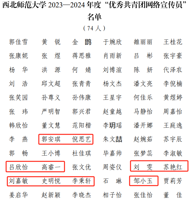 gg999策略手机白菜10位员工入选2023——2024年度“优秀共青团网络宣传员”名单: