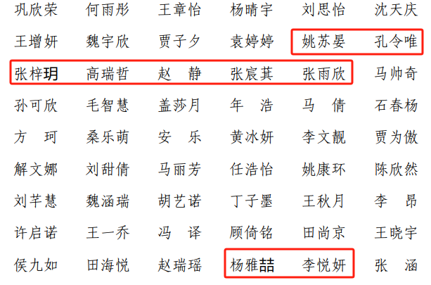 姚苏晏 孔令唯 张梓玥 高瑞哲 赵静 张宸萁 张雨欣 杨雅喆 李悦妍 刘昊冉 张雨彤