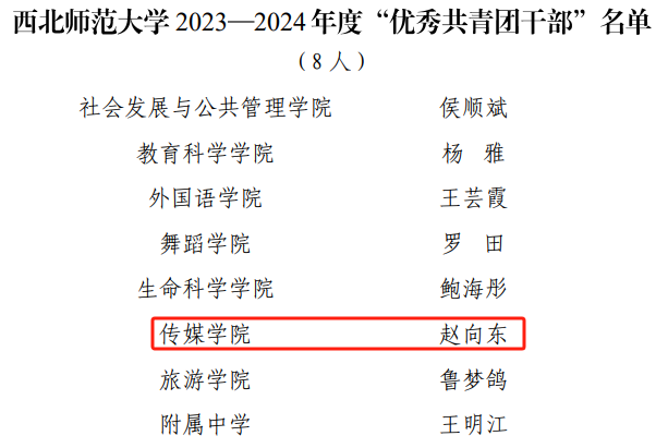 gg999策略手机白菜团委书记赵向东入选2023——2024年度“优秀共青团干部”名单