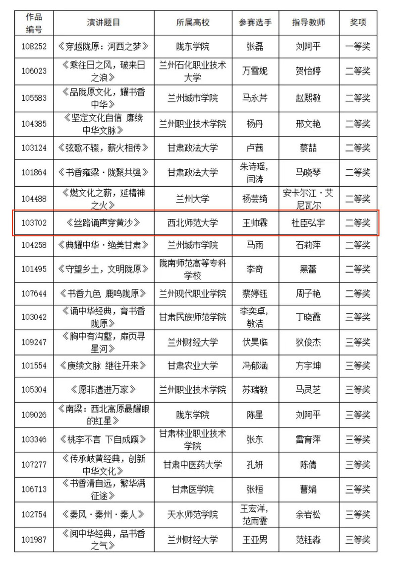 教师杜臣弘宇指导的《丝路诵声穿黄沙》斩获优秀指导教师奖。
