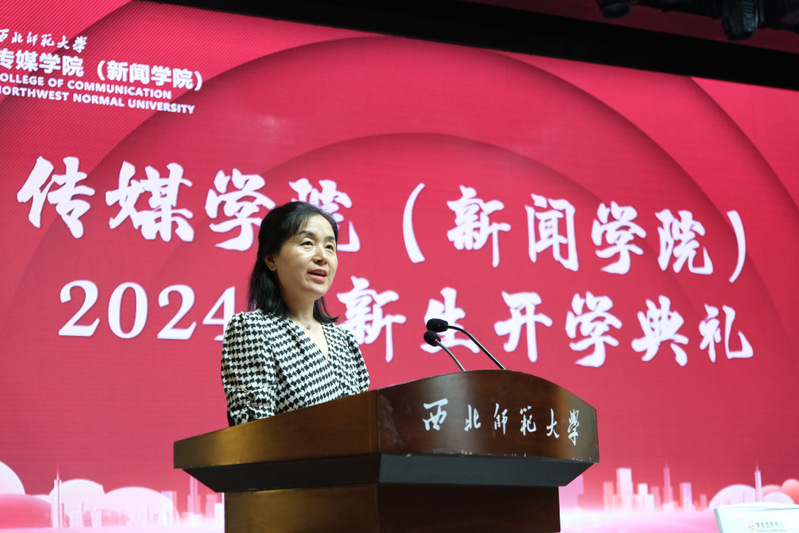 杨华经理向新生致辞。杨华从“媒介”的角度切入,向同学们讲述了“何为‘新媒介’”以及如何去理解“新”。“新”是一种挑战,也是一种机遇,更是一个值得思考和勇于面对的问题。杨华与同学们共勉:既遇则不搪塞、不退缩、不逃避,迎难而答;既择则无悔,勇往直前,要以求真向善尚美之心走好传媒路!