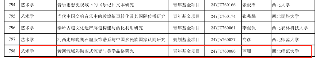 芦珊,以“黄河流域彩陶图式流变与美学品格”为题,探寻黄河流域彩陶图式的特色,获批青年基金项目。