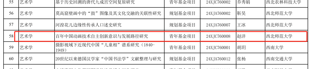 赵洋以“百年中国动画技术自主创新意识与发展路径研究”为题,深入挖掘中国动画技术发展的内在规律,该项目获批青年基金项目。