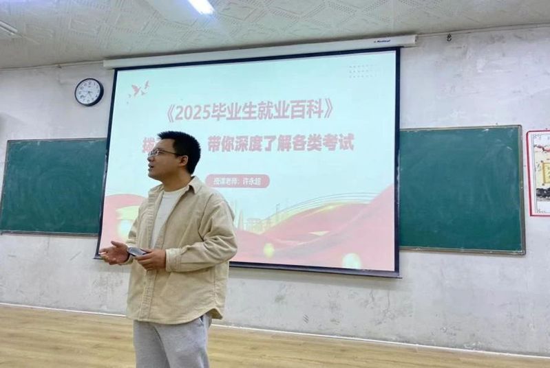 随后,许永超老师对公务员考试的总体情况进行了概述。他运用数据分析和统计图,将不同类型公考的基本情形清晰地展现出来,包括近五年报考人数的变化、报录比以及报考趋势等,这些内容让同学们能够更加直观地认识公务员考试。许永超老师还鼓励同学们尝试多种公考类型,以此增加就业机会,许永超老师丰富的公考经验,使同学们受益匪浅。