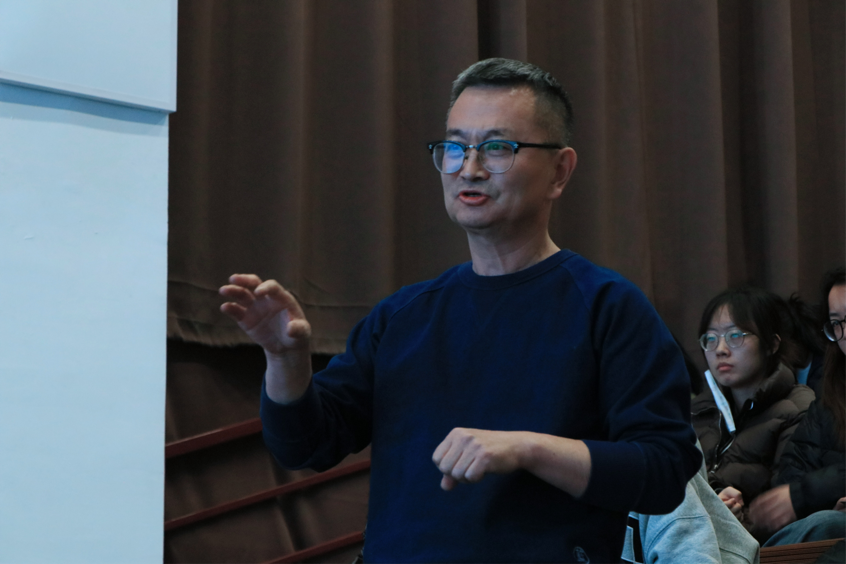 影片放映结束后,李斌兵导演就影片内容与现场观众进行了深度交流,并分享自己的创作心得。李斌兵首先对参与影片制作的老师、同学致以诚挚的感谢,并表示这部电影是他献给故乡的一封情书,希望在座的各位都能拥有创作激情,勇敢的去尝试创作。针对王浩同学提出的,如何避免自己的作品出现阳春白雪、大众难以认可的情况。李斌兵表示,在平衡个人情感表达和广泛观众共鸣上,不仅要忠于内心创作,也要重视技术层面的提升,个人生活阅历也极其重要。阅历的缺乏可能会导致创作在故事深度、角色塑造、情感共鸣、文化背景描绘以及创新灵感方面受到限制,因此平时要多积累、多留心观察。到场的各位老师也针对影片发表了自己的观点。吴婧雯赞扬了导演的高超的构图和拍摄手法,并对影片诗意的画面质感予以高度评价。冯晓临针对影片提出了三个问题,这些问题也都是大家内心都有的疑惑,导演的回答让我们更深刻、更透彻地领悟了这部影片。