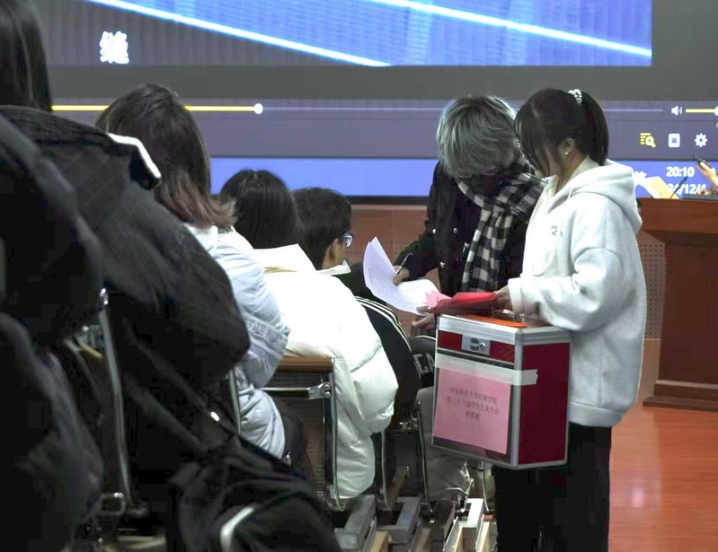 此次大会设总监票人1人、监票人2人、总计票人1人、计票人2人。大会选举采用差额选举、不记名的方式进行投票,由71名本科生构成的评委从10名候选人当中选出了8名员工代表,投票结果当场公布。
