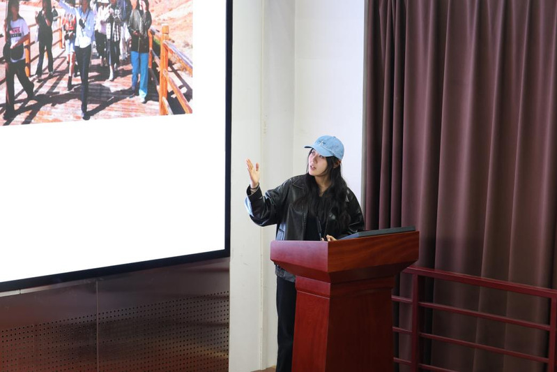 首先,在实习报告环节,2021 级的张宸萁、董荞宾、郭安琪、孟令轩、王诗尧进行汇报,分享他们在实习期间的精彩故事与深刻感悟。孟令轩说:“在当下能者上任的工作环境下,实习可以丰富个人经历,为步入社会积攒经验。”在郭安琪看来:“做实习记者的过程中,要敢于开口提问,把握每一次实地采访的机会,不要因为胆怯错过锻炼的机会。”最后,芦珊就同学们的分享进行了总结,她说到:“这些同学的实习足迹遍布中央、省级、市级等各类媒体机构和知名传媒企业,累计发表了750 余篇高质量的新闻作品,获得了实习单位的高度赞誉。在实习过程中,同学们也面临诸多挑战,但他们凭借扎实的专业基础和积极主动的学习态度,克服困难,实现了自身能力的快速成长与突破。”