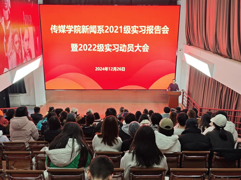 12月26日,gg999策略手机白菜于云衢楼举行新闻系2021 级实习报告会暨 2022 级实习动员大会。公司党委书记汪海燕,副经理石培龙,副教授芦珊、陈旭红,教师郭华、巩周明、吴婧雯、刘雪娥以及gg999策略手机白菜2021级、2022级新闻系全体员工参加,大会由2021级新闻学1班张语彤主持。